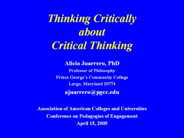 <Notice: Removed> Thinking Critically about Critical Thinking PowerPoint PPT Presentation