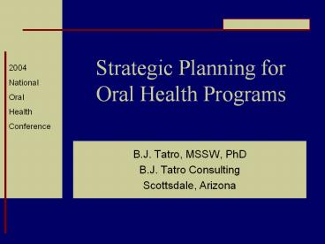 <Notice: Removed> Strategic Planning for Oral Health Programs PowerPoint PPT Presentation