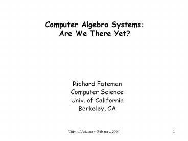 <Notice: Removed> Computer Algebra Systems: Are We There Yet? PowerPoint PPT Presentation