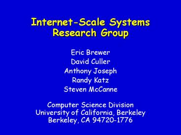 Title: InternetScale Systems Research Group