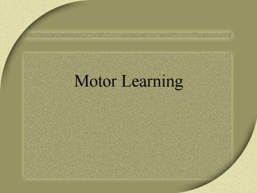 Motor Learning PowerPoint PPT Presentation