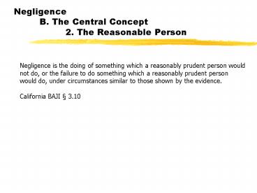 Negligence B. The Central Concept 2. The Reasonable Person PowerPoint PPT Presentation