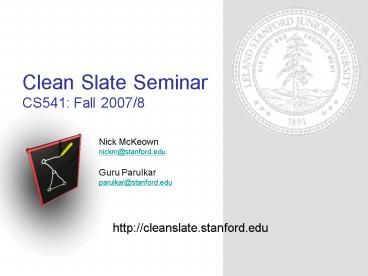 Title: Clean Slate Seminar CS541: Fall 20078