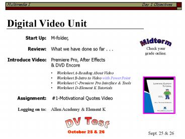 - 2. DUE All Video Packets, Assignments, Project