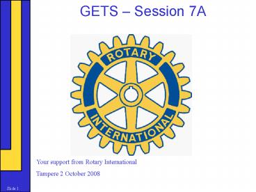 Title: GETS Session 7A