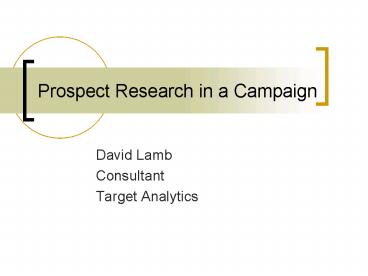 <Notice: Removed> Prospect Research in a Campaign PowerPoint PPT Presentation