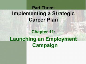 Title: Part Three: Implementing a Strategic Career Plan