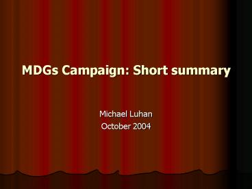 MDGs Campaign: Short summary PowerPoint PPT Presentation