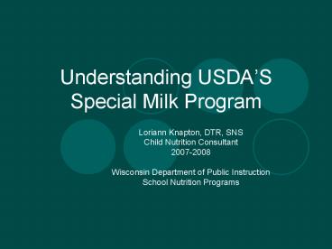 Understanding USDAS Special Milk Program PowerPoint PPT Presentation