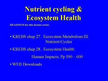 Nutrient Cycles - KREBS chap 28. Ecosystem Health