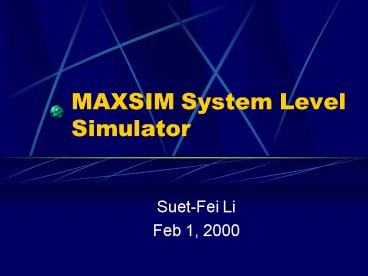 MAXSIM System Level Simulator PowerPoint PPT Presentation