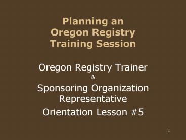 1Planning anOregon RegistryTraining Session