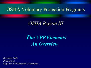 Title: OSHA Voluntary Protection Programs