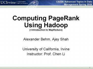 <Notice: Removed> Computing PageRank Using Hadoop Introduction to MapReduce PowerPoint PPT Presentation