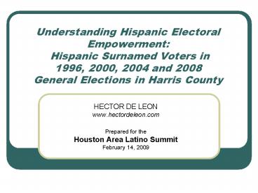 <Notice: Removed> Understanding Hispanic Electoral Empowerment: Hispanic Surnamed Voters in 1996, 2000, 2004 and 2008 PowerPoint PPT Presentation