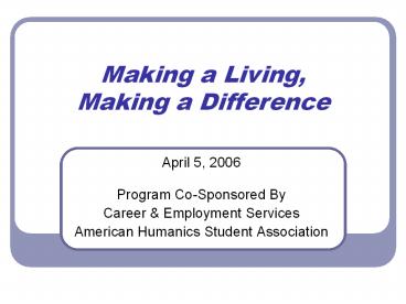 Making a Living, Making a Difference PowerPoint PPT Presentation