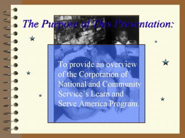 Title: The Purpose of This Presentation: