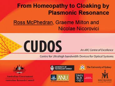 1From Homeopathy to Cloaking by Plasmonic Resonance