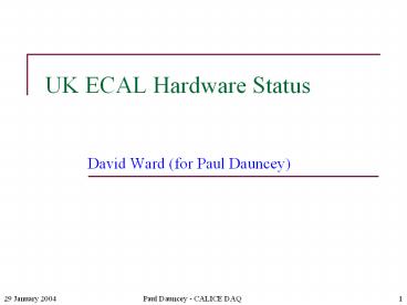 UK ECAL Hardware Status PowerPoint PPT Presentation
