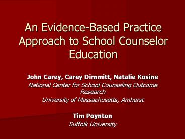 Title: An EvidenceBased Practice Approach to School Counselor Education