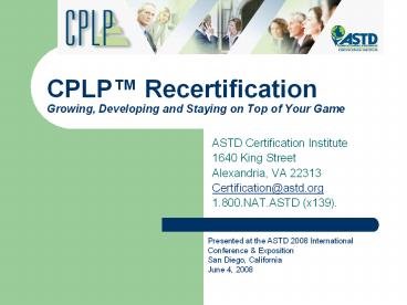 and FAQs - http//www.astd.org/content/ASTDcertification/CPL