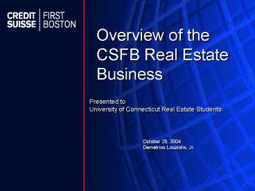 1 Overview of the CSFB Real Estate Business