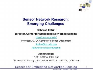 <Notice: Removed> Sensor Network Research: Emerging Challenges PowerPoint PPT Presentation