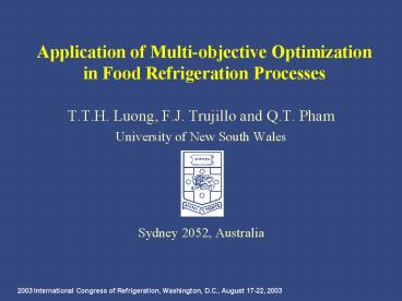 Title: Application of Multiobjective Optimization in Food Refrigeration Processes