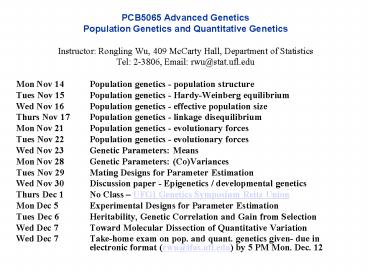 - Instructor Rongling Wu, 409 McCarty Hall,
