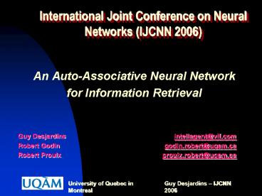 International Joint Conference on Neural Networks IJCNN 2006 PowerPoint PPT Presentation