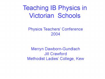 Teaching IB Physics in Victorian Schools PowerPoint PPT Presentation