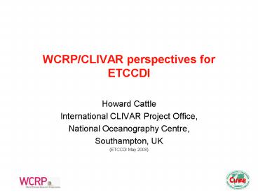 Title: WCRPCLIVAR perspectives for ETCCDI
