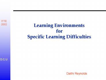 Learning Environments for Specific Learning Difficulties PowerPoint PPT Presentation