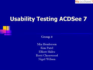 Usability Testing ACDSee 7 PowerPoint PPT Presentation