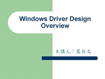 <Notice: Removed> Windows Driver Design Overview PowerPoint PPT Presentation