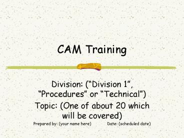 CAM Training PowerPoint PPT Presentation