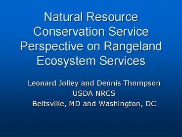Natural Resource Conservation Service Perspective on Rangeland Ecosystem Services PowerPoint PPT Presentation