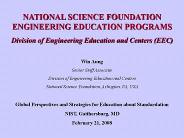 NATIONAL SCIENCE FOUNDATION ENGINEERING EDUCATION PROGRAMS PowerPoint PPT Presentation