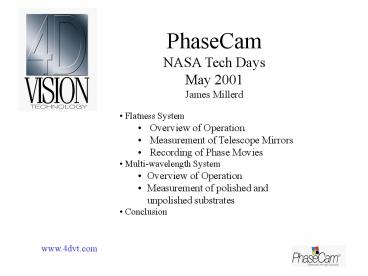 Title: PhaseCam NASA Tech Days May 2001 James Millerd