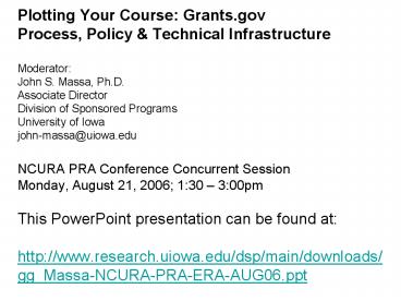 Title: Plotting Your Course: Grants.gov Process, Policy