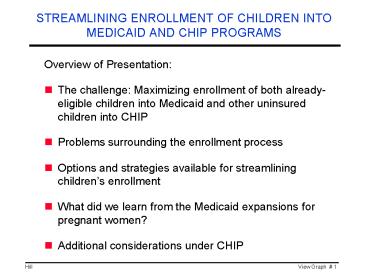 STREAMLINING ENROLLMENT OF CHILDREN INTO MEDICAID AND CHIP PROGRAMS PowerPoint PPT Presentation