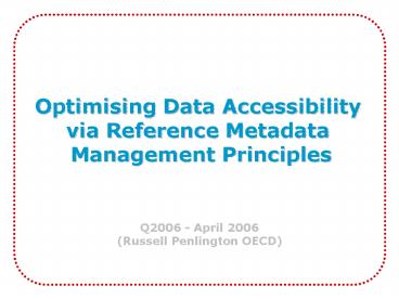 the reference metadata reporting structure. - Metadata should be attached at the highest level