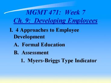 MGMT 471: Week 7 Ch. 9: Developing Employees PowerPoint PPT Presentation