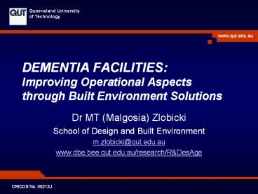 Title: DEMENTIA FACILITIES: Improving Operational Aspects through Built Environment Solutions