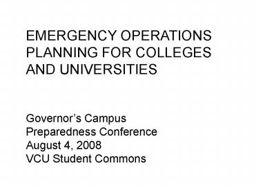 1EMERGENCY OPERATIONS PLANNING FOR COLLEGES