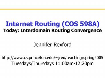 Title: Internet Routing COS 598A Today: Interdomain Routing Convergence