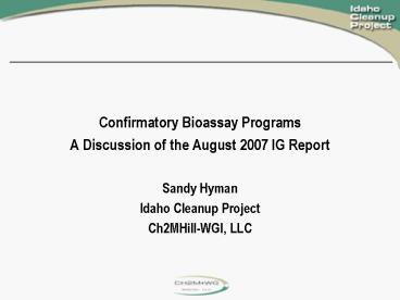 Confirmatory Bioassay Programs PowerPoint PPT Presentation