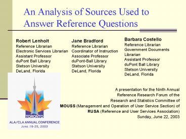 Title: An Analysis of Sources Used to Answer Reference Questions
