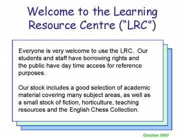 Welcome to the Learning Resource Centre LRC