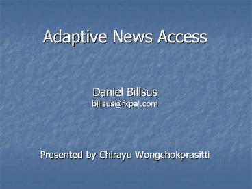 potential web-based news distribution. - 1 Billsus, D. (2005). Adaptive News Access